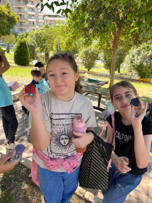 OKULUMUZ 4-I SINIFI ATİKE ÖĞRETMENLE BİRLİKTE PARKTA TAŞLARI BOYAYARAK HEM KAYAÇLARI ÖĞRENDİLER, HEMDE EĞLENDİLER.